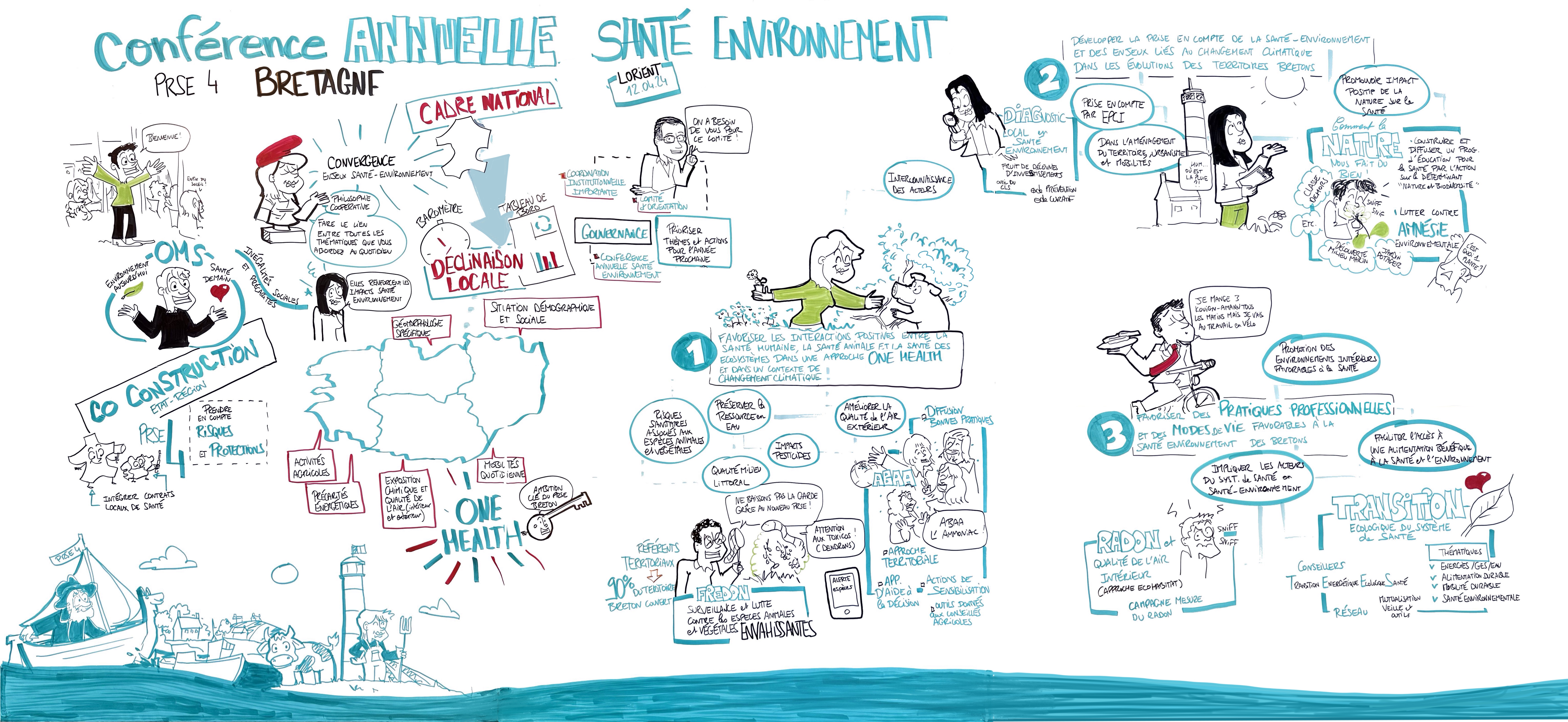 Après une matinée consacrée à la présentation du PRSE 4 Bretagne (axes, gouvernance, financement) et de certaines actions-phares de 2024 par les porteurs de projets, l’après-midi était réservée à la sensibilisation des participantes et participants avec des fresques participatives portant sur la thématique « One Health ».